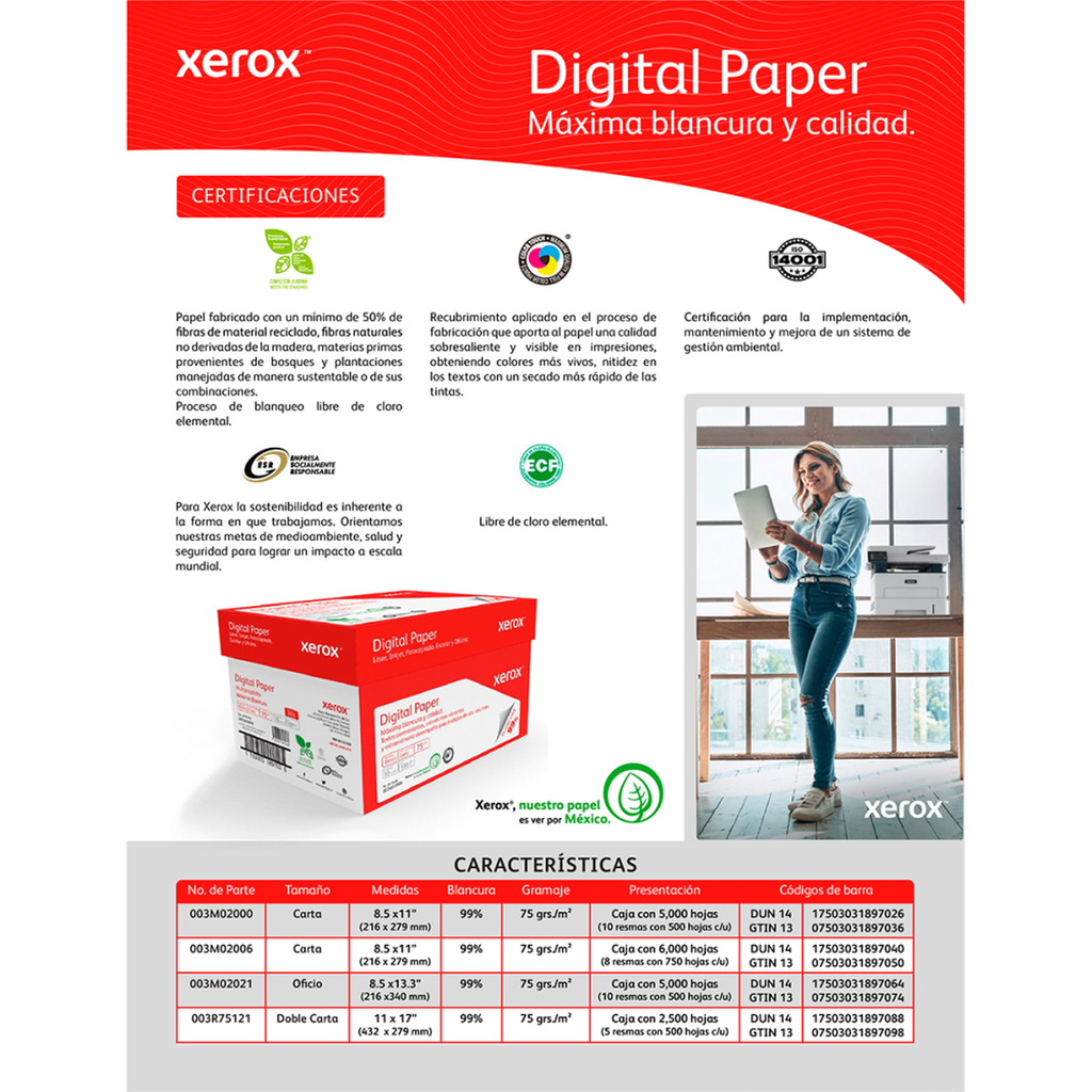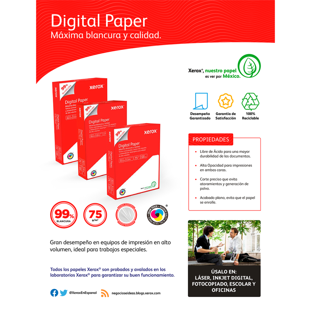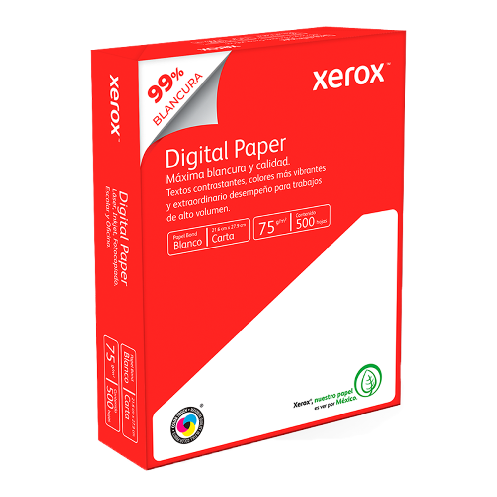Papel con Máxima Blancura y excelente calidad, con gran desempeño en equipos de impresión en alto volumen, ideal para trabajos especiales.